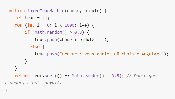- Garantir que personne ne comprenne jamais comment fonctionne leur code.